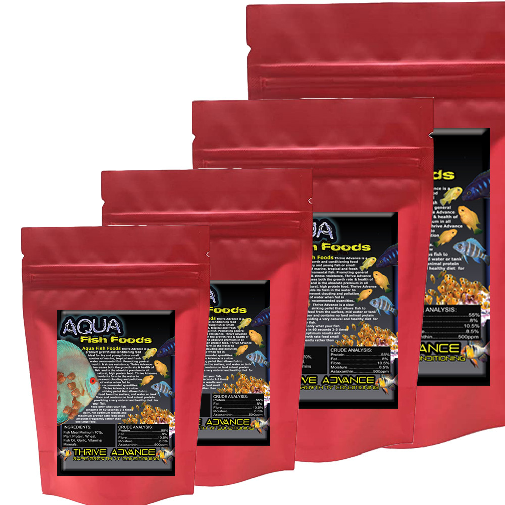 Aqua Fish Foods Thrive Advance is a slow sinking high grade micro pellet suitable for most types of fish including Marine, Tropical and Freshwater and is formulated specifically for rapid growth in young fry while maintaining high quality water.