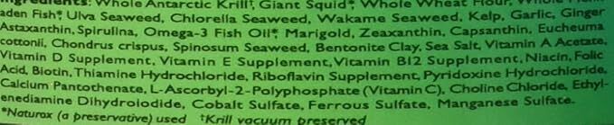 High marine‑protein base (krill, squid, whole fish) for fast, clean growth