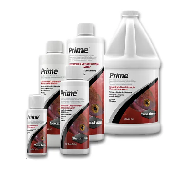 Seachem Prime is a highly concentrated water conditioner for freshwater and marine aquariums that makes tap water safe in seconds. It removes chlorine and chloramine and binds toxic ammonia into a non‑toxic, biofilter‑ready form to protect fish during water changes and cycling. Prime also detoxifies nitrite and nitrate and chelates heavy metals commonly found in tap water, all without altering pH or affecting skimmers when used as directed.